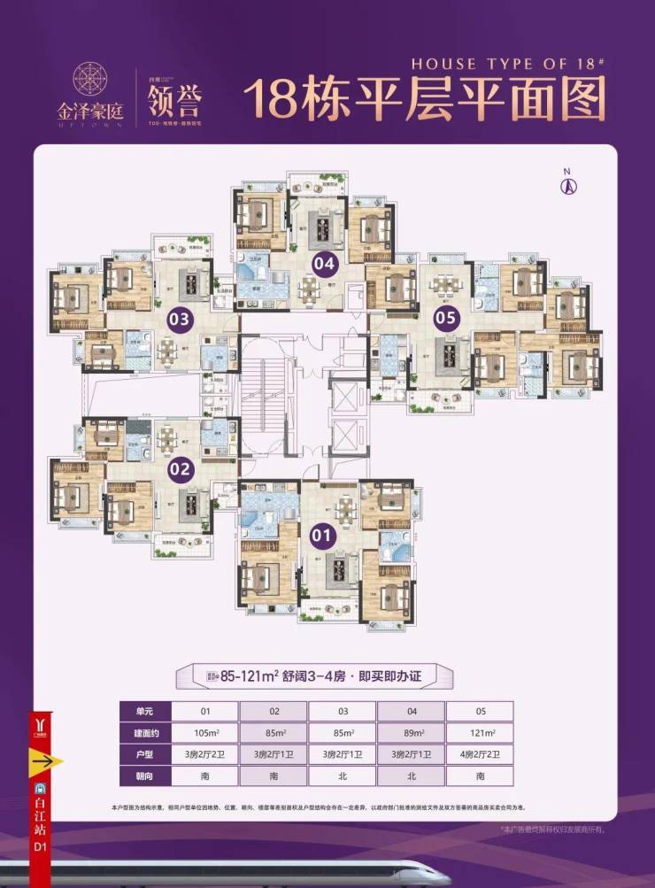 金泽豪庭15载醇熟大盘收官之作,时刻秉承健康舒居理念,约685套王牌户型压轴敬献。建面85-121㎡3-4房,首推18栋,约145套,85-89㎡三房两厅一卫、105㎡三房两厅两卫、121㎡四房两厅两卫。舒适宜居,空间阔绰,采光俱佳,南向瞰风情园林