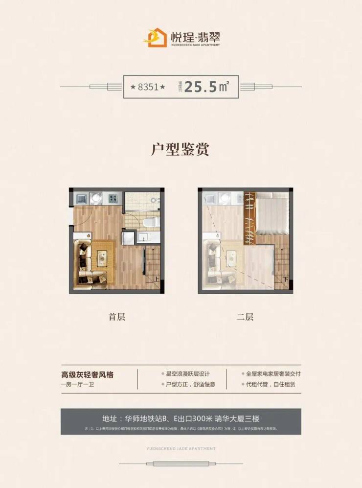 项目总建面48224㎡,由北塔、南塔两栋15-30层高层组成,容积率仅2.0,绿化率20%。主推建面25.5-40.4㎡商办单位,均价38000元/㎡,首付40万起(按50%首付比例计算)。户型采用爱马仕橙高奢设计、克莱恩蓝现代风尚、高级灰轻奢风格三大主题,满足多元化审美需求。
