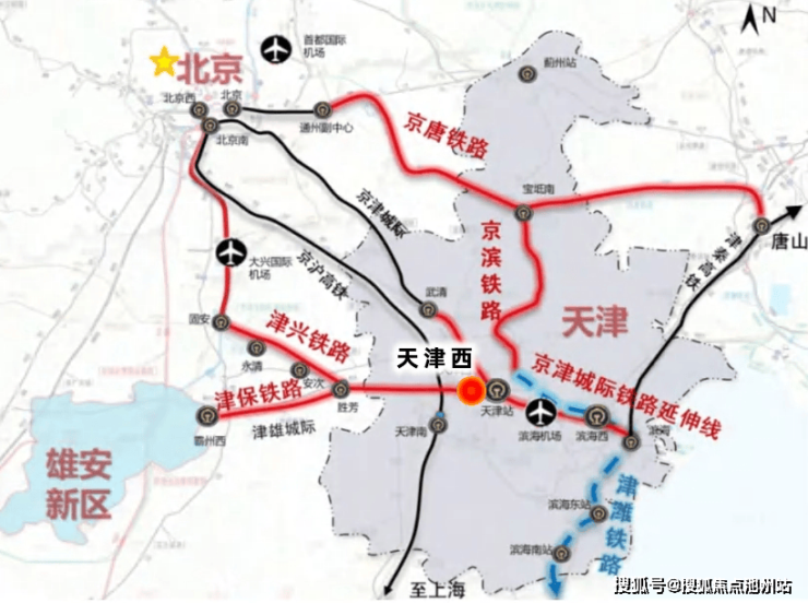 包括8条高铁交汇(含京滨、津兴城际),占天津抵京高铁线路的90%,约30分钟直达北京,打造天津面向首都的“桥头堡”,实现高铁地铁化;通过空铁联运,西站城市航站楼可直接值机,直达大兴机场,覆盖全球航线;在市内轨交网络上,地铁1、4 、6号线无缝换乘。