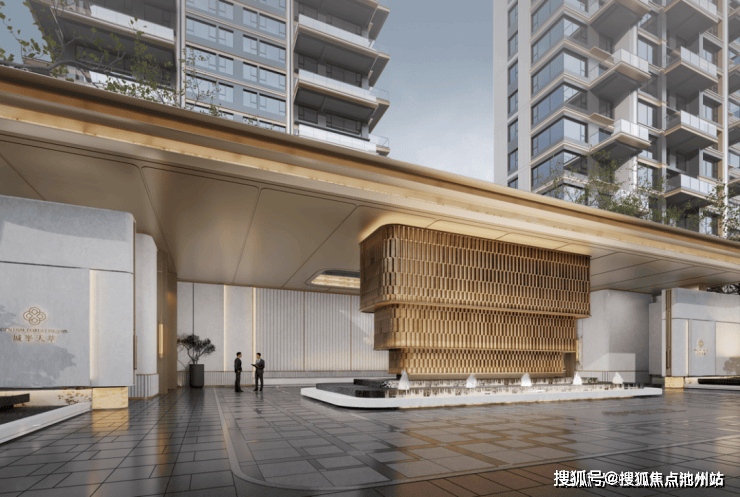 南侧主入口打造约150米“超级界面”,精心塑造具有强烈昭示性的城市建筑群像,借水景和艺术装置与镜水面,营造泉源意境,既彰显了社区不言而喻的品质感,也成为区域焕新升级的视觉标志。