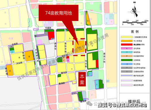 5.教育:项⽬目北北侧 200 ⽶,规划74亩九年一贯制学校,近科⼤、师⼤双高校(但是学校没有命名)