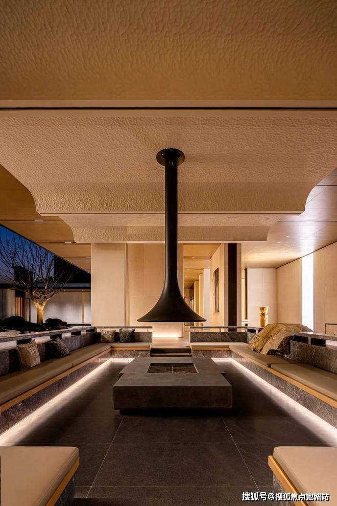 恰如安东尼·高迪所言“直线属于人类,曲线属于上帝”,沐云川灵感溯源轻井泽虹夕诺雅,将其“蜿蜒依水”的流动感,呈现于园区设计,让沐云川“大水院”规制与山石、植物温柔融合在一起,仿若大自然的神来之笔,在有形无形处,让空间“流动”起来。