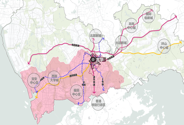 吉华地处深圳市中部,是珠三角经济核心区和粤港澳大湾区的腹地,拥有发达的交通基础设施和便利的物流条件,能够承载粤港澳大湾区金融商贸、科技创新、文化教育、国际交往等核心引擎功能。
