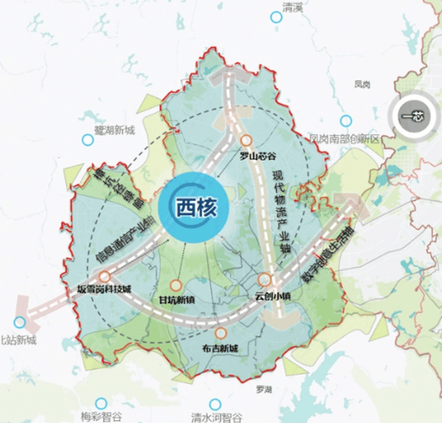 吉华承担着建设龙岗区“一芯两核多支点”发展战略中的“西核”——数字信息核、协同周边区域打造世界级ICT产业集群承载区、构筑龙岗“都市科技绿芯”的使命任务。片区与坂雪岗科技城仅一路之隔,具备承载世界级电子信息产业集群辐射的政策优势和天然区位优势。