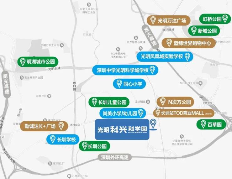 配建6万㎡精装居所,400米内两大保障房小区提供超1万套租赁房源。项目西侧毗邻尚美小学,2公里内覆盖深圳中学光明科学城学校、光明凤凰城实验学校、长圳学校、同心小学等多所优质学校