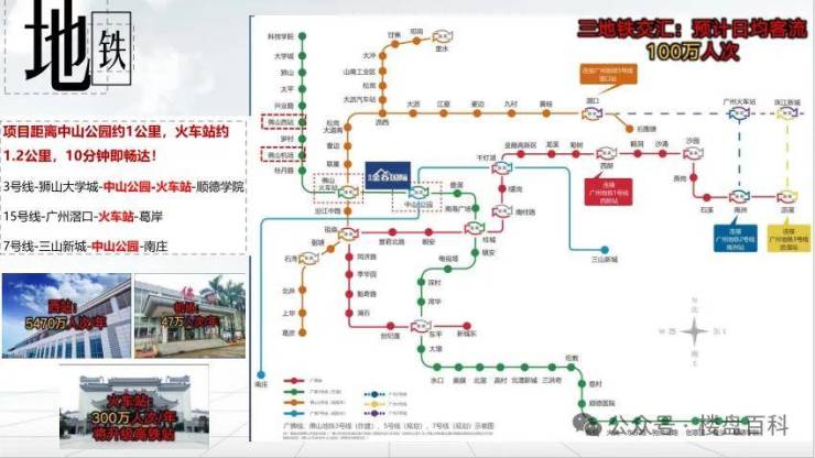 地铁——佛山地铁地铁3/7/15号线环绕,10分钟可到达,3号线已通车,7/15号线规划中,广湛高铁在建,建成一站15分钟到广州,10分钟高明国际机场;