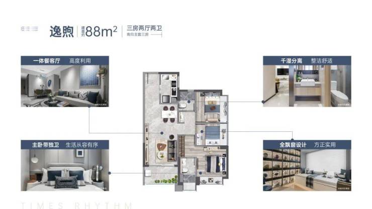 户型产品:80m2三房卫,88m2三房两卫106m2四房两卫