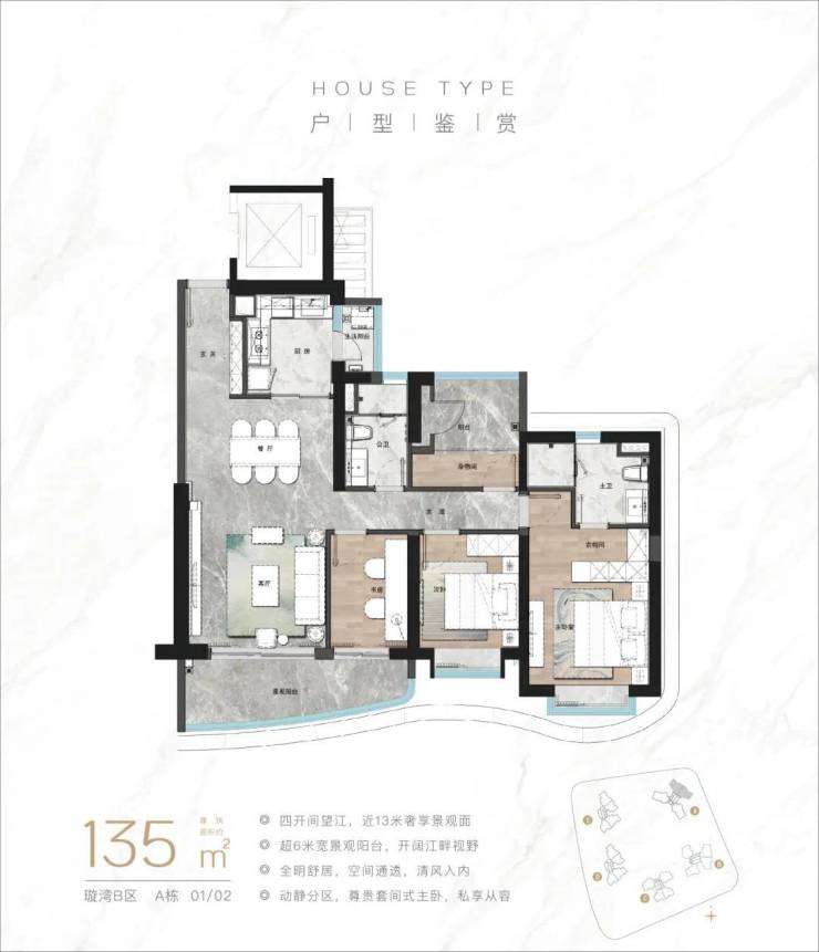 🔘【135㎡王牌东南向滨江四房】