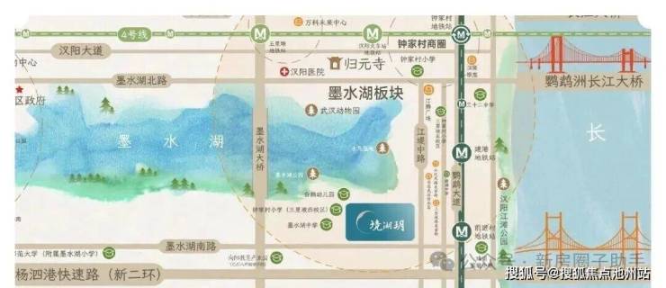境湖玥位于汉阳区江堤中路与墨水湖南路交汇处,同时占据了2.5环内、二环旁的核心地段。
