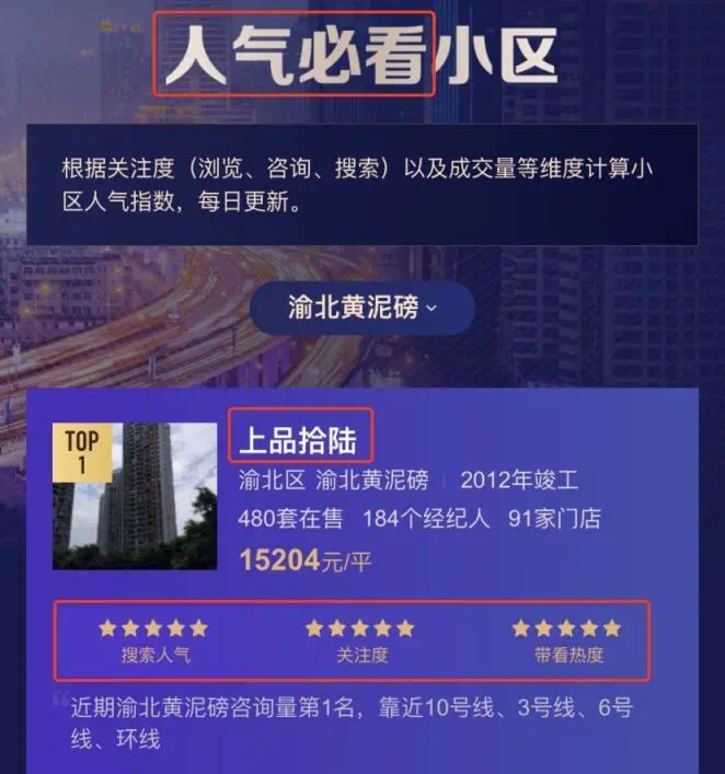 虽然这个楼盘传说风水有问题,但在关注度方面,却一直占据着渝北黄泥磅二手房小区的排名前列位,其流通性和买卖活跃度都非常不错,也难怪“人红是非多”了。
