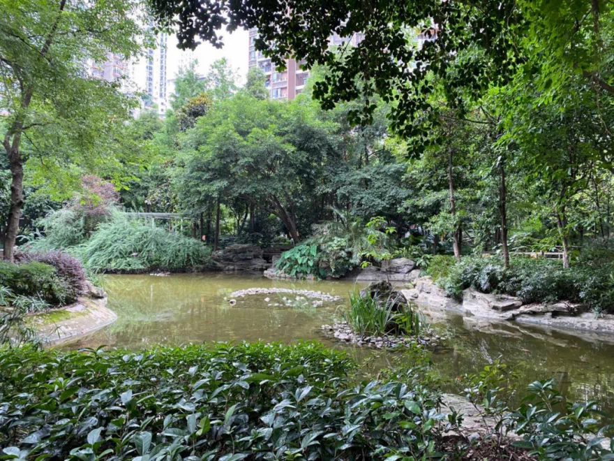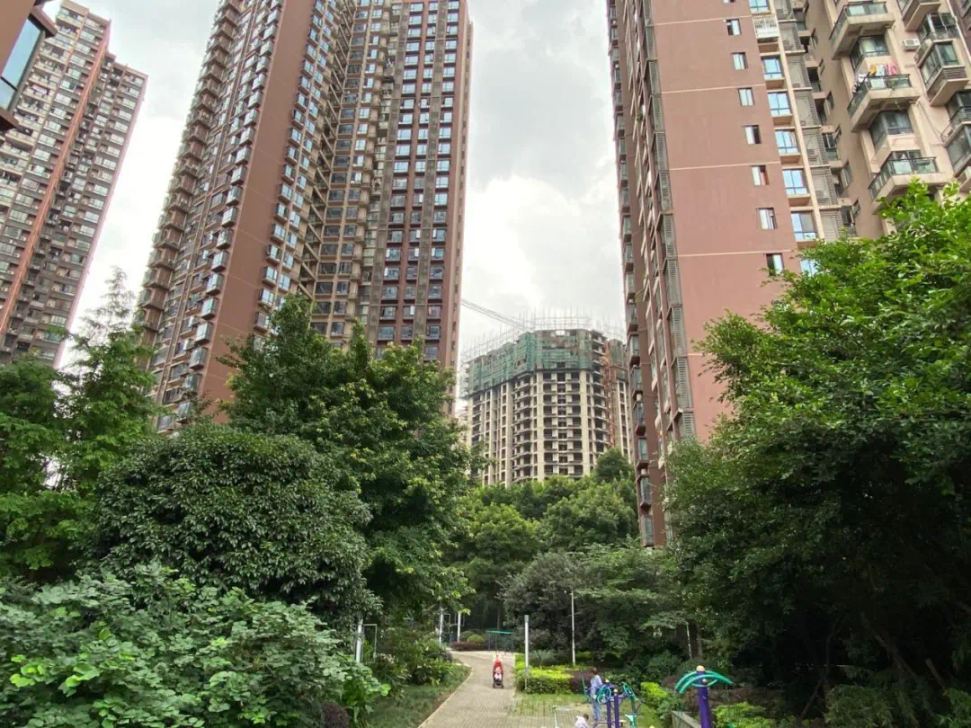 整个小区虽然容积率高,但是景观不错,绿化非常好。中庭还有一个小型人工湖,物业也保持得比较干净。但是,一些楼房的外立面因为房龄太久,修补后的色差比较严重。