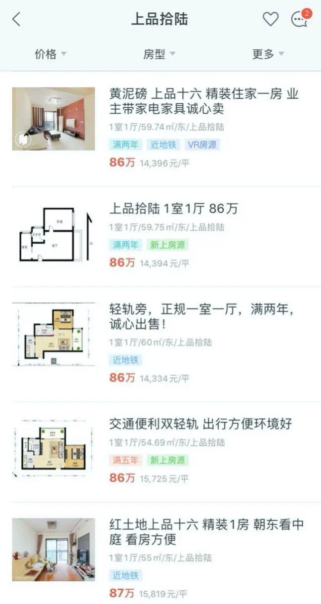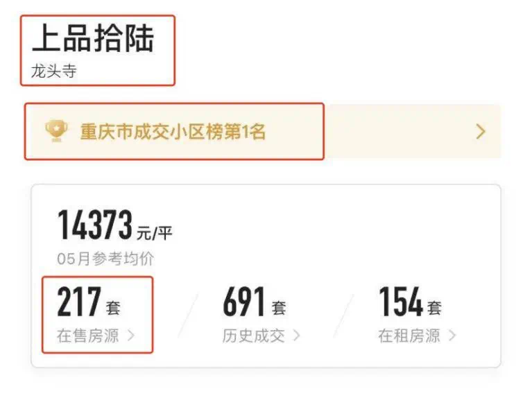 我们还是回归到主题聊一聊上品拾陆的二手房现状吧。目前,链家上的在售房源有217套挂牌出售,均价为建面14373元/平。