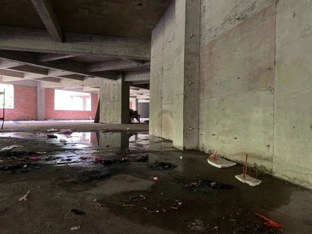 此时正值炎热夏日,我一踏入大楼,一股寒气就扑面而来。眼前,一地的香蜡纸烛让人不寒而栗……