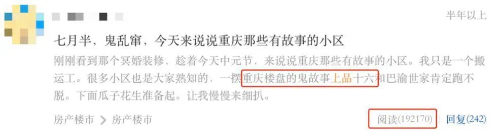 前阵子,我们聊到重庆最“凶”的版块七星岗,粉丝们的“八卦之魂”就被狗哥给点燃了,纷纷开始吐槽各个小区的灵异传说。这时,评论区里出现了一个我再熟悉不过的小区名字——“上品拾陆”。