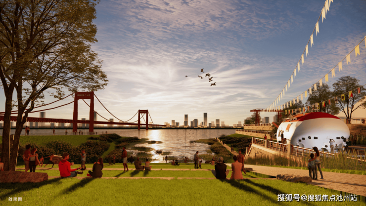 另一方面,在湾岸沿线规划了滨水公园联盟,传承土地的工业历史与文化脉络,用自然与艺术的方式打造了公园绿地,成为武汉滨江生活新标杆!