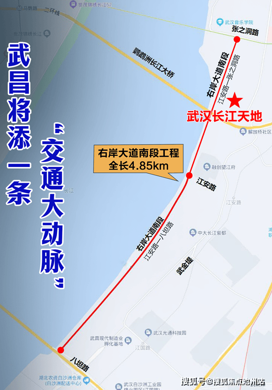 2023年初,武汉城建旗下子公司中标右岸大道南段(临江大道)工程(张之洞路-江安路)工程,未来武汉长江天地门口的断头路将被打通,该道路规划为地面辅路双向4车道+地下主线双向4车道的双层路网。