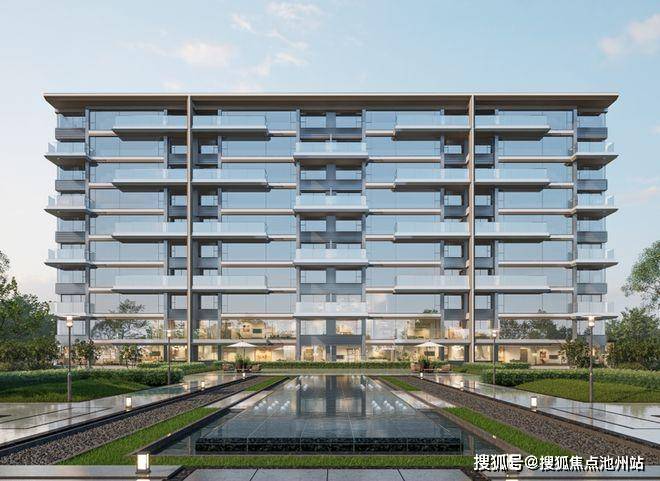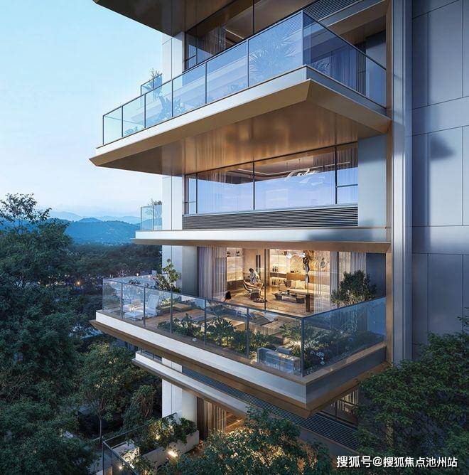 项目外立面还配以系统窗+大面玻璃+基座石材,超大窗墙比最大化南向面宽,阳台落地窗与北侧局部取消窗间墙提升采光。
