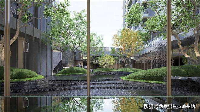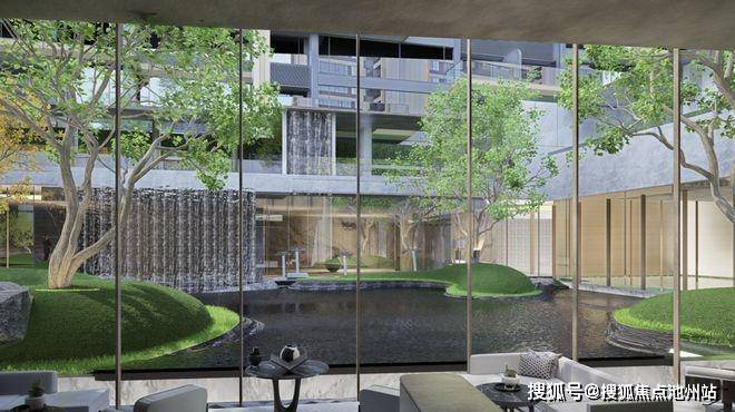 与会所无界交汇的便是约1000平下沉式立体私屿,以叠水游园手法造出3D立体景观,满院景石、多棵10米以上乌桕为会所注入蓬勃生机。