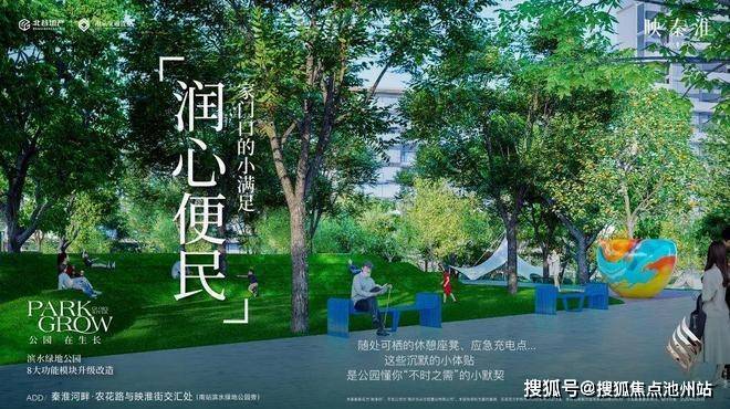 映秦淮项目近邻约15万方滨水绿地公园,分生态科普、城市形象、游乐运动、花海休闲、滨水休闲5大板块,满足日常市民多种休闲需求。