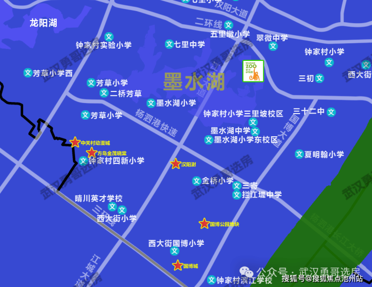 附近有弘桥小学金桥校区,墨水湖小学东校区,晴川英才学校,墨水湖中学,以及拦江堤中学。