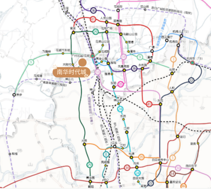 【4地铁接驳】9号线、18号北延线(建设中,预计2026年通车)、24号线(后改名8号线北延线,2023年8月已开工,预计2028年通车)、29号线(规划中)