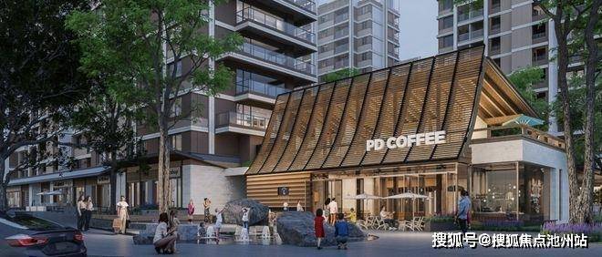 ·超205米礼序界面:万科自营Co-life咖啡店,以烟火商街与城市公园实现功能交织,为市民提供开放式口袋花园与落客广场。