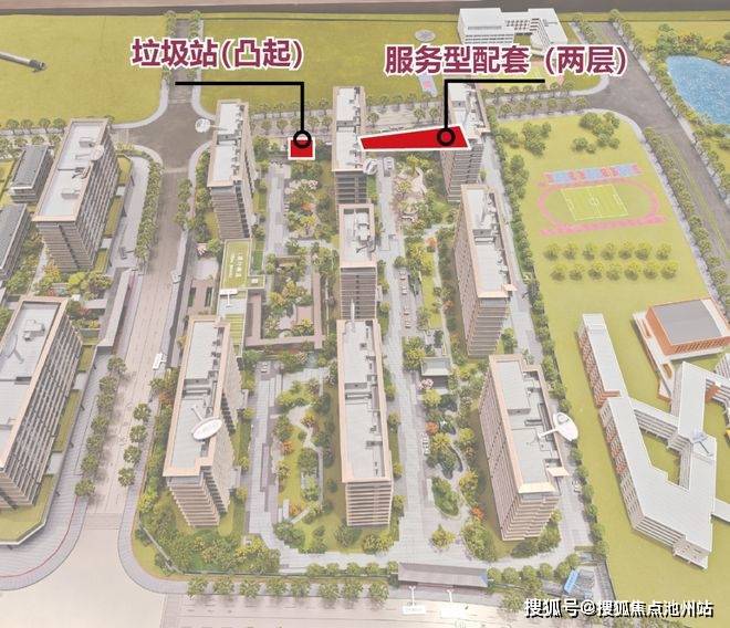 3.垃圾站位于8#9#之间,7#8#之间有服务型配套用房,两层高。