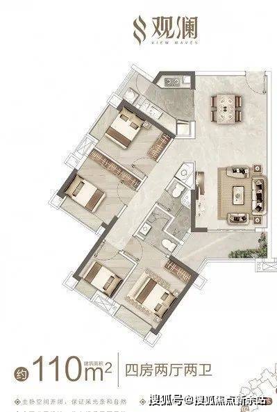 整个项目,采用了两梯四户的V型设计,不仅是一梯两户的享受,亦保证了对视私密性好。