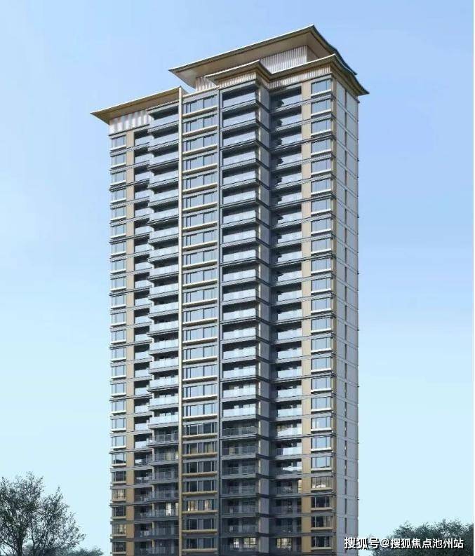 建筑设计:采用第四代精工立面,四面大面铝板 + 局部玻璃幕墙,窗墙比提升至 35%,住宅标配系统门窗,建筑塔冠取意古建重檐之美,师著三重飞檐,标准层披檐设计,结合大幅玻璃、金属线条等,以现代手法雕琢东方形制之美。