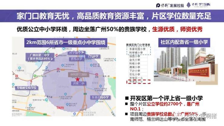 保利罗兰的楼下就是人才工作集团第二幼儿园和广州开发区去第二小学(北校区),上学非常方便。小学省一级学位,公立名校。管理和制度都可以直接复用本校,师资也是从本校抽调的力量。生源大部分都是小区业主,整体素质比较高。