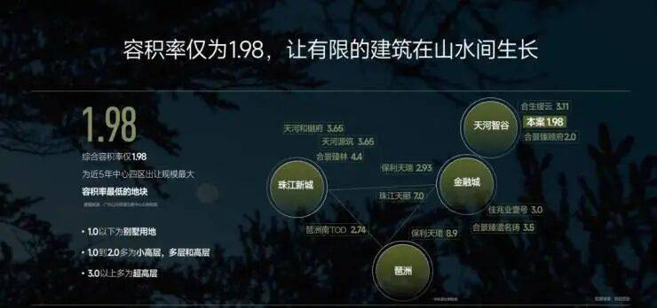 项目容积率仅1.98,是近5年中心四区出让规模最大,容积率最低的地块,宛如在森林里种房子