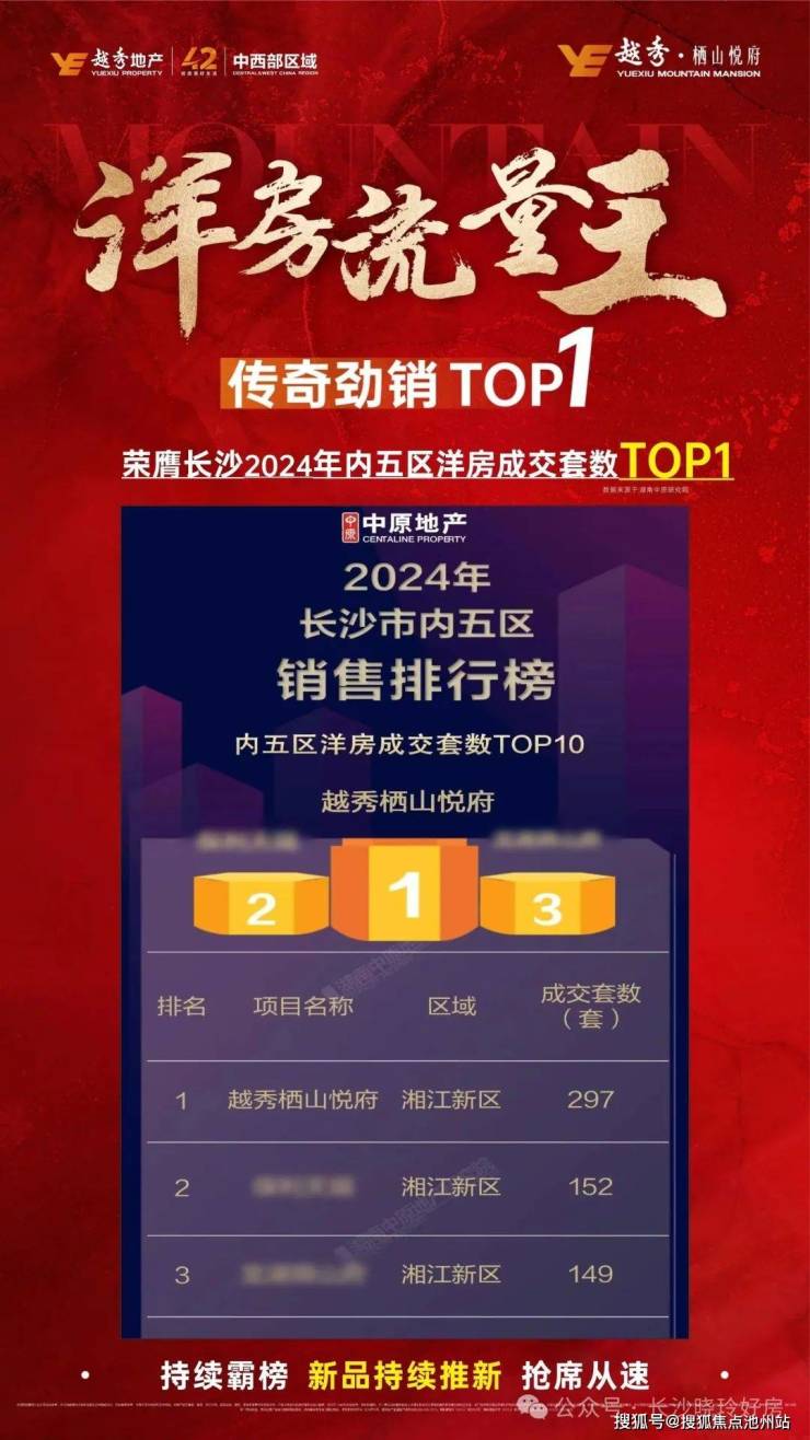 根据湖南中原研究院公布的数据显示,越秀栖山悦府荣膺长沙2024年内五区洋房成交套数TOP1,流量王者,持续霸屏,好房当燃不让!