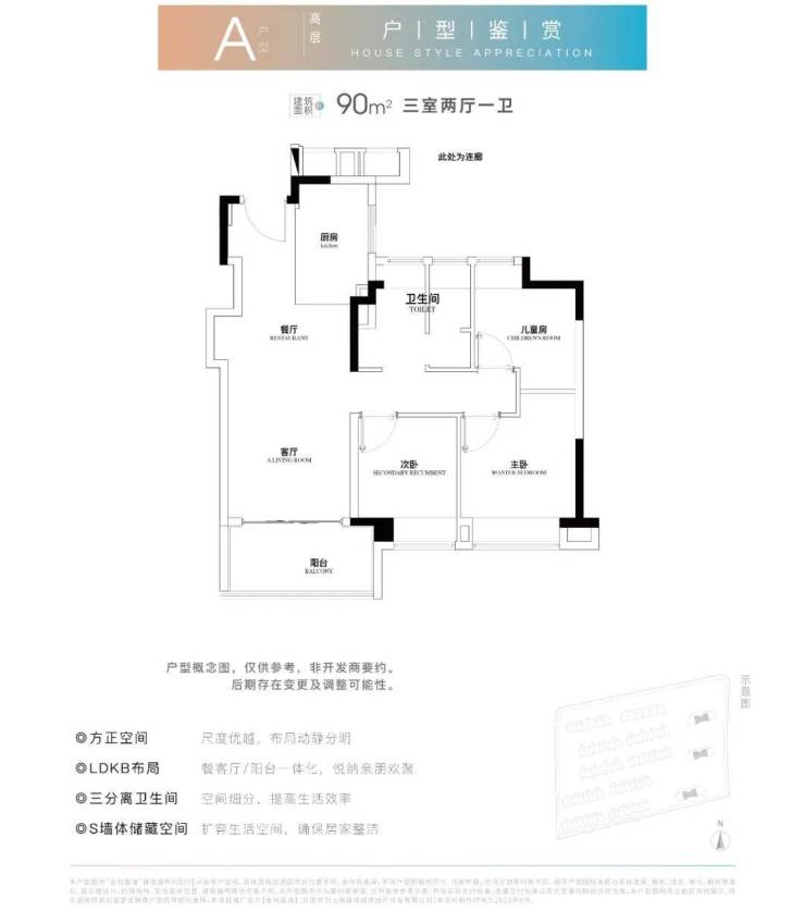 【90㎡户型】三开间朝南,LDKB一体化空间布局。