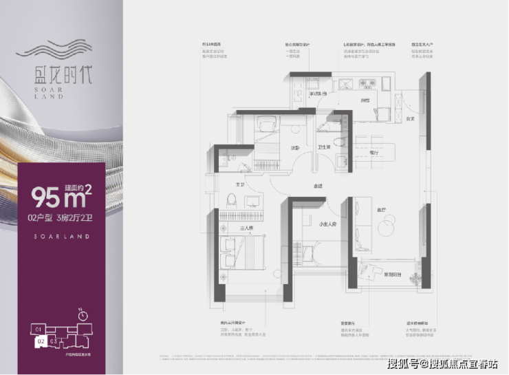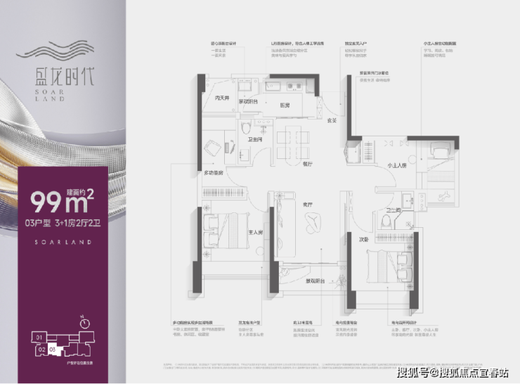 【盛龙时代】定位是面向城市精英的乐活、时尚的精品社区。可售房源仅约110套。本次推售的是市场臻稀的创新产品:约99㎡3+1房2卫,以及约95㎡三房2卫