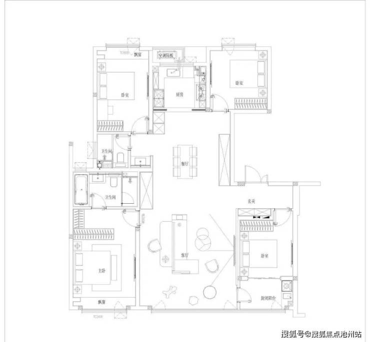 主卧开间3.6米,套房设计,有独立的卫生间;