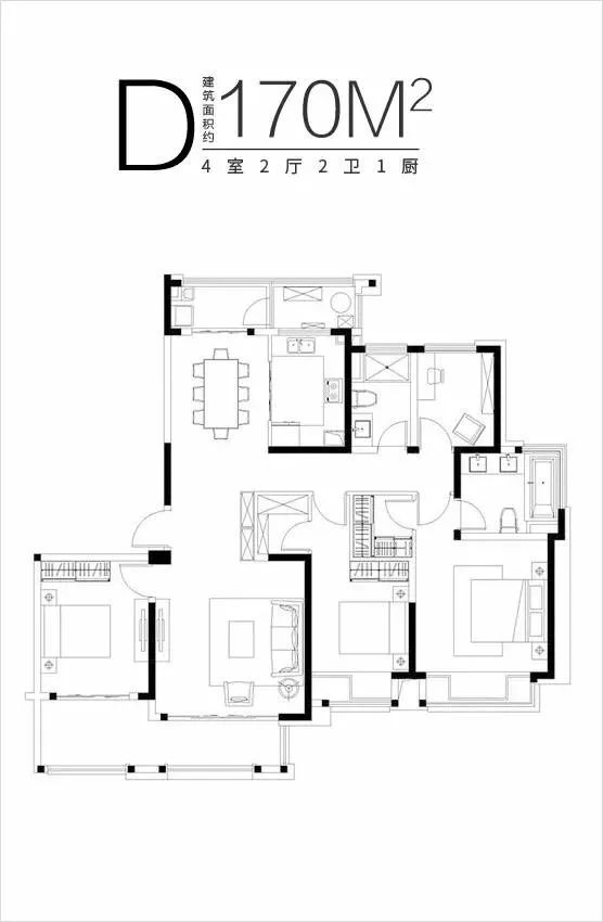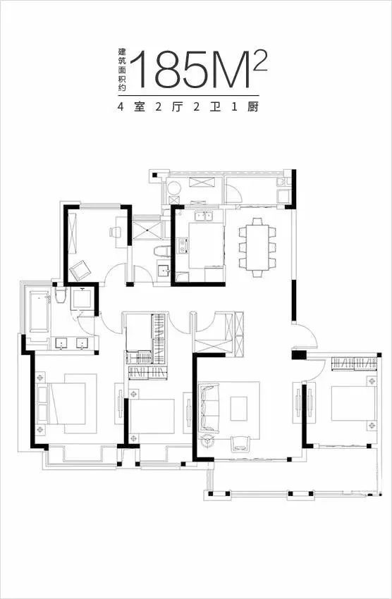 此次加推的户型只有2种,建面约170㎡4房两卫和建面约185㎡4房两卫。建面约170m²