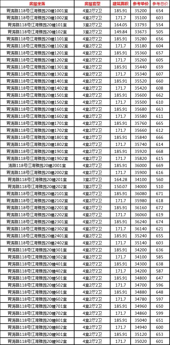 以下为48套房源一房一价表