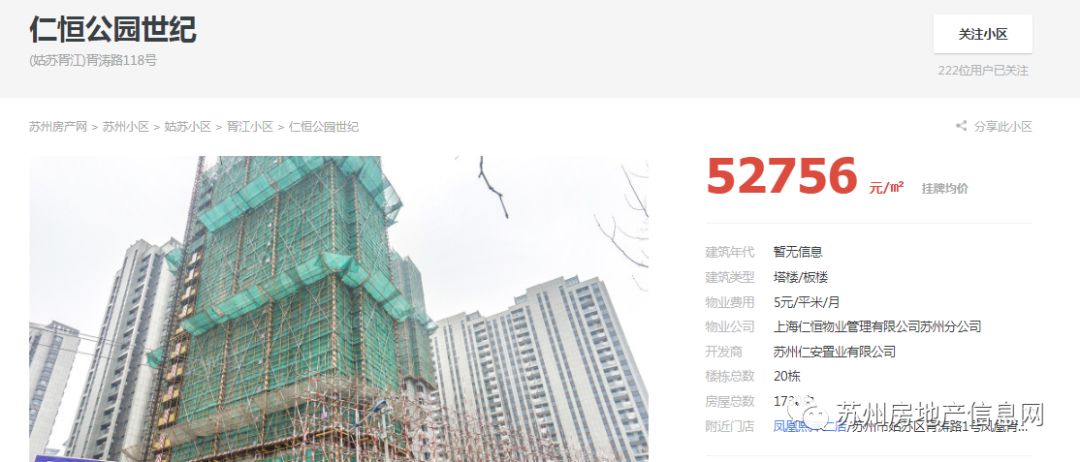 。周五下午仁恒公园世纪官方宣布最后1栋20楼销售公告延伸阅读:现场直击 | 验资300万!限价倒挂!最后48套!仁恒公园世纪正在验资、明天开盘!(内含最后1栋20楼销售公告详情)位于姑苏区的主城的仁恒公园世纪(备案名:江湾雅园),最后1栋20#仅48套房源现房交付,今天上午9点正式验资至下午18:00截止,冻结资金300万。官方消息,目前20#房源已领证,仅48套!领证建面约170m²、185m²,3房2厅2卫(4套)、4房2厅2卫(44套),整体备案均价约35236元/m²,备案总价区间约:505-674万套。