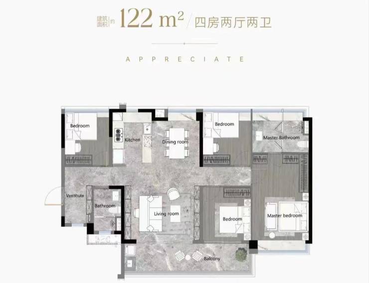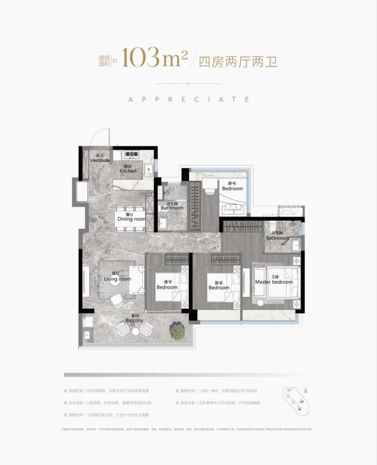 户型鉴赏(103-188平全南向四房,得房率高达126%)