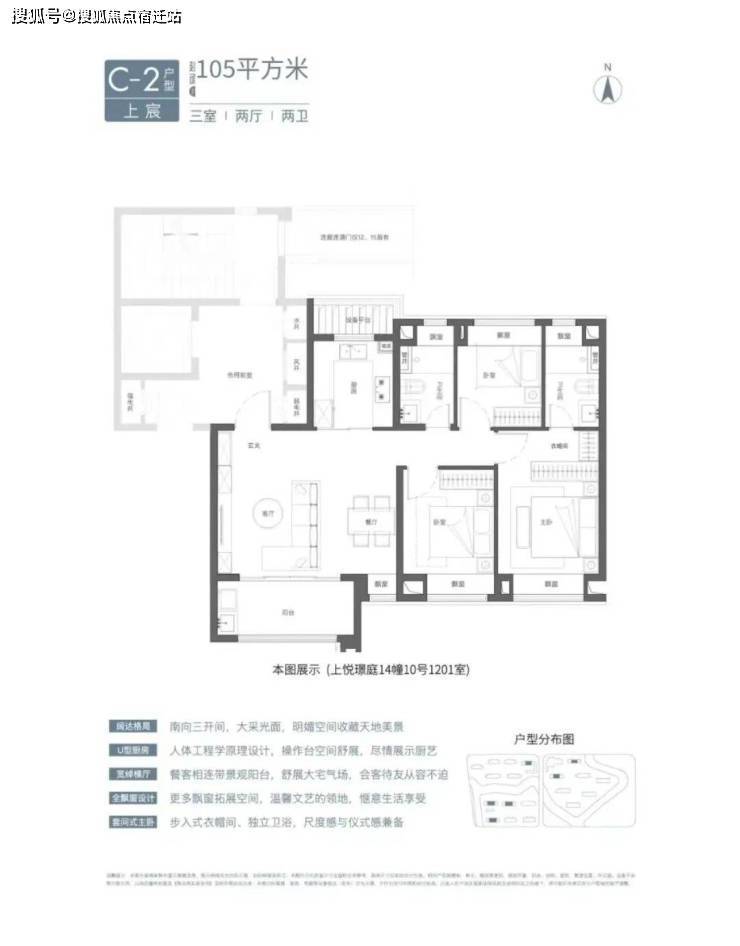 建面约105㎡3房2卫有宽厅和竖厅两种风格,其中宽厅户型好评度颇高。