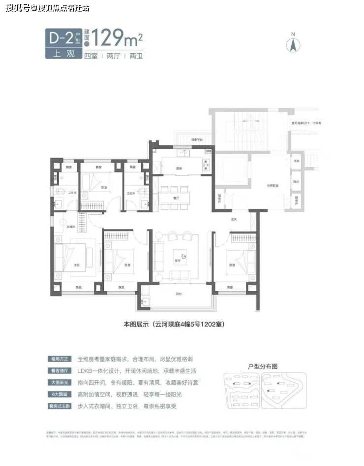 预算充足的小伙伴可以入手建面约129㎡4房2卫。