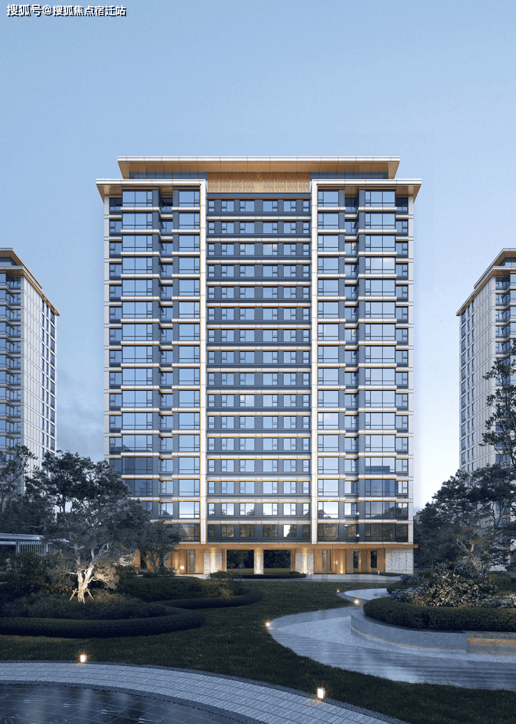 首层基座采用人造石材+铝板等装饰材料,增强建筑整体感和精致度;顶层外挑飘板使建筑立面更加清晰,层次感更丰富。