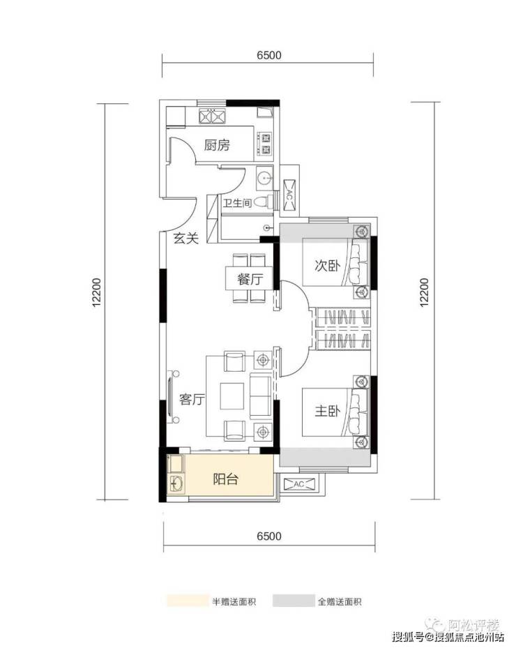 1、2号楼东西两端边户,南北通透,南向一整面双联大阳台,三面采光,套内空间利用充分,不过主卧采光和私密性弱一些。