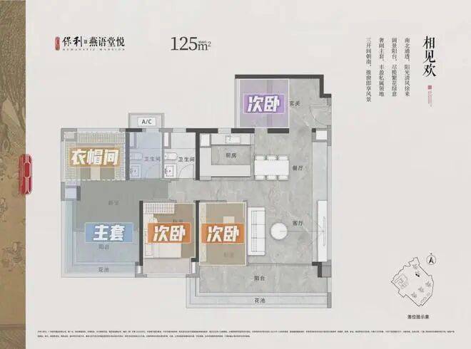 125㎡四房两卫:西南向,视野开阔,居住体验佳,是整个A区中价格较高的户型。