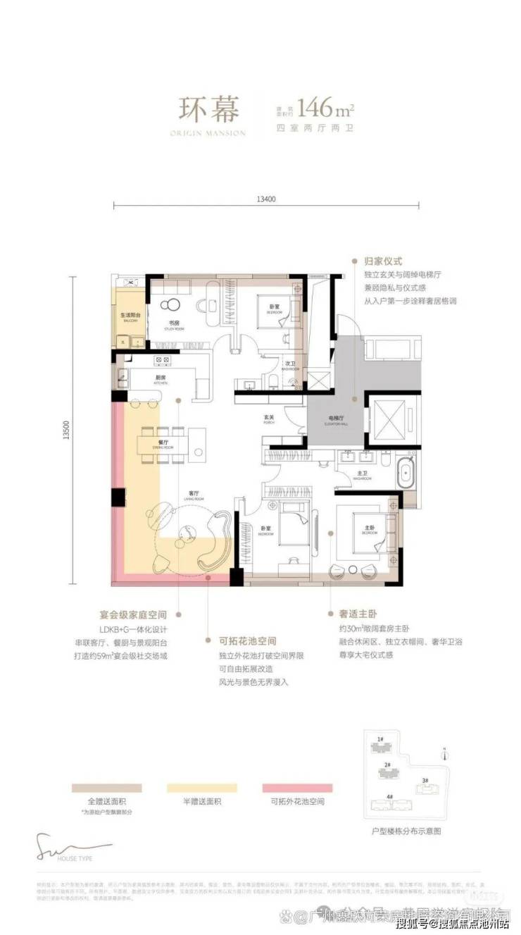 146㎡户型适合喜欢聚会社交的家庭,59㎡的公共客厅区太震撼了,周边叫朋友来聚餐特有面,主卧带飘窗和花池拓展空间,采光好,空间开阔。
