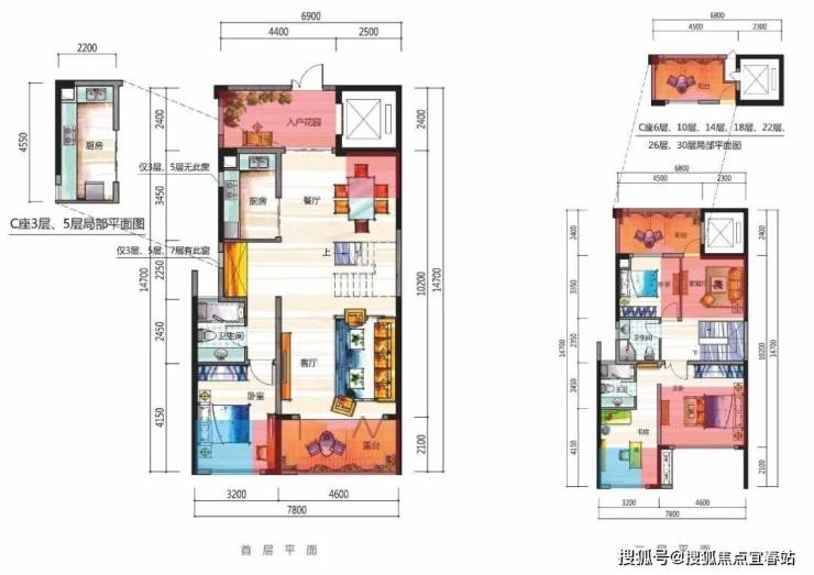 24k金艺术级入户大堂,私家电梯入户,超低梯户比,约40平入户花园。板式住宅,南北通透,5.8米挑高中空复式,10.2米极致双厅,170%超高使用率,奢侈户型布局。