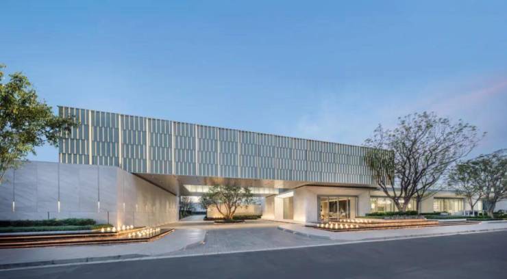 在选材方面,部分采用冰火板与岩板组合打造车行道廊柱,结合仿透光云石工艺定制的车牌标识,部分主要通道更以全铝板铺设吊顶,从细节处彰显高端社区的品质感。