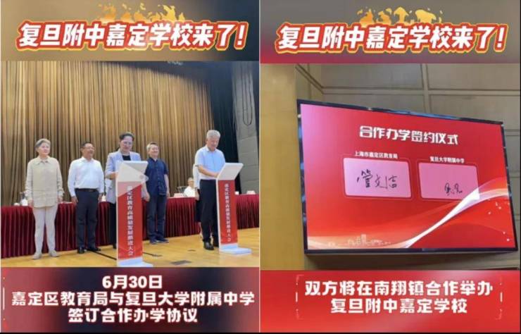 6月30日,嘉定区教育局与复旦附中签订合作办学协议,双方将在南翔镇举办复旦附中嘉定学校!