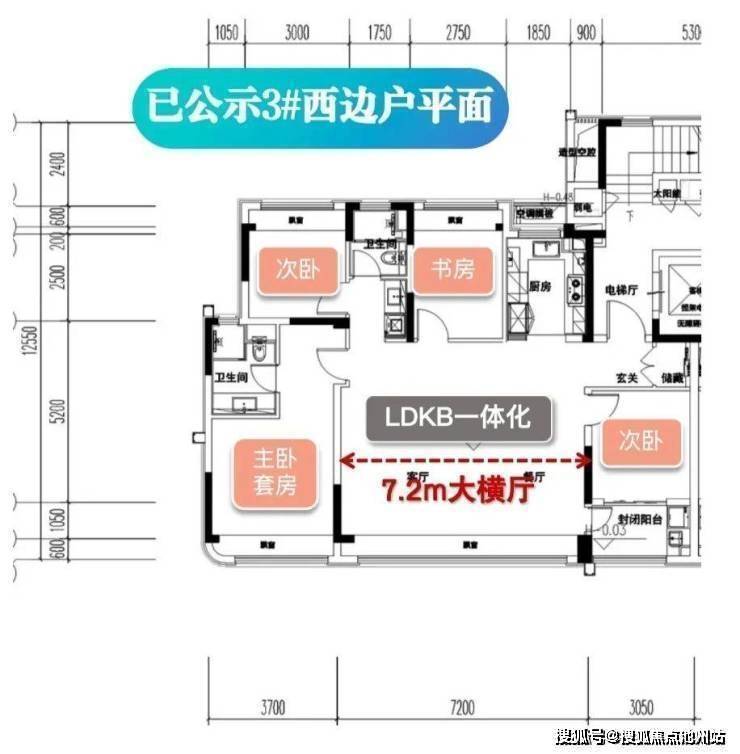四开间朝南,整体南向就有约17.05米的面宽;还做到了专厅入户、南北双阳台、超奢级LDBK等设计;