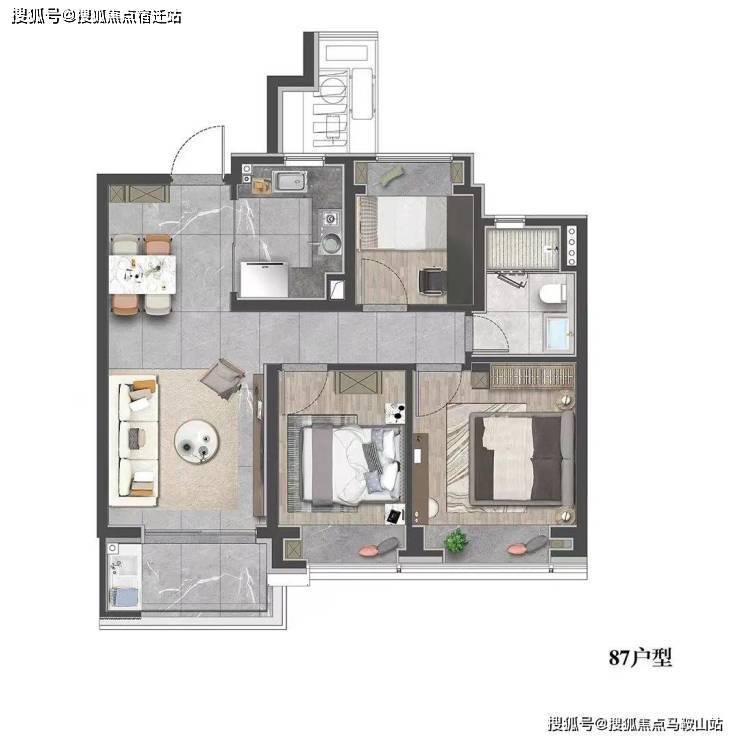 建面约87㎡3房2厅1卫